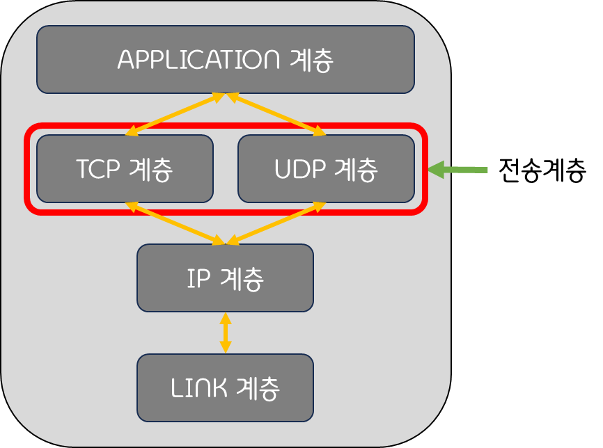 전송계층은 IP계층에서 준 경로를 바탕으로 데이터를 전송하는 역할을 담당하고, 전송방법엔 TCP와 UDP가 존재한다.